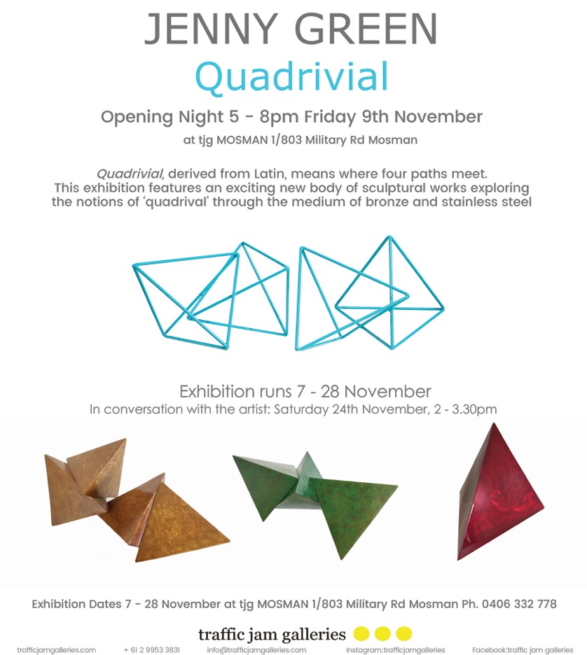 Jenny Green takes tetrahedrons (triangular pyramids) and colour, line and curve to explore geometry, harmony and the heavens beyond.